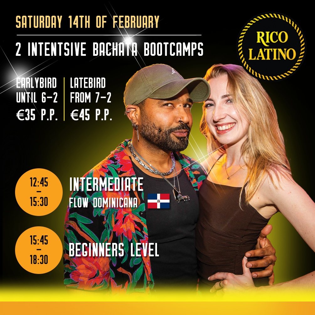 Goed nieuws! Op zaterdag 14 februari organiseert Rico Latino twee bootcamps. De bootcamps geleid door Luis & Lisette beloven een onvergetelijke ervaring te worden! Of je nu een beginner bent met een beetje danservaring of een doorgewinterdeย Bachata-danser, er is voor elk niveau een perfecte bootcamp.๐ . Deze intensieve bootcamp traditionele Dominicaanse bachata is ontworpen voor iedereen die de muziek voelt, zijn of haar techniek wil verbeteren en de รฉchte smaak van de Caribische dans wil leren ๐ฉ๐ด๐ฅ ๐ฅ Tijdens de bootcamp werken we aan: ๐น Technische basis: Dominicaanse pasjes, gewichtsoverdracht, balans en bewegingscontrole ๐น Dominicaanse footwork: hoe je snel, los en stijlvol beweegt zonder helderheid te verliezen ๐น Muzikaliteit en ritme: de muziek interpreteren met je hele lichaam, niet alleen met je voeten ๐น Draaien en natuurlijke flow: lichte, vloeiende en muzikale draaien in traditionele Dominicaanse stijl ๐น Plezier en รฉcht leren: begeleide praktijk, persoonlijke feedback en een fijne sfeer om samen te groeien ๐ Dit is geen sensual bachata workshop ๐ Hier dansen we authentieke Dominicaanse bachata, met ziel, smaak en flow . Bootcamp Bachata Tradicional Dominicana (Intermediate level): Inschrijflink: https://www.bueno.nu/webshop/school/226/schedule-detail/1421122 Doelgroep: Bachata dansers met meer dan 1 jaar ervaring Tijdschema: 12.45 uur: Check-in voor Bootcamp Bachata Intermediate 13.00 uur: Start Bootcamp Bachata Intermediate 15.30 uur: Einde Bootcamp Bachata Intermediate . Bootcamp Bachata Beginners: Inschrijflink: https://www.bueno.nu/webshop/school/226/schedule-detail/1400884 Doelgroep: Personen met weinig of geen ervaring Tijdschema: 15.45 uur: Check-in voor Bootcamp Bachata Beginners 16.00 uur: Start Bootcamp Bachata Beginners 18.30 uur: Einde Bootcamp Bachata Beginners . Docenten: Maak kennis met onze fantastische docenten, Luis en Lisette! ๐ Ze zijn absolute sterren op de dansvloer en hebben een schat aan ervaring in het lesgeven op hoogstaand niveau. ๐๐บ Bij Rico Latino zijn ze al geliefde docenten en worden ze regelmatig geboekt voor geweldige optredens op dansfeesten en bachata festivals. Dans met hen mee en laat je betoveren door hun enthousiasme en passie voor Bachata! Kosten: Er zijn twee prijsniveaus, afhankelijk van wanneer je je inschrijft: Early bird prijs (per persoon, tot en met 6 februari): โฌ35 Normale prijs (per persoon, vanaf 7 februari): โฌ45 Deelname kan met of zonder danspartner, zolang er nog ruimte beschikbaar is. Het is echter verstandig om je snel aan te melden, omdat de plaatsen beperkt zijn en vol = vol.